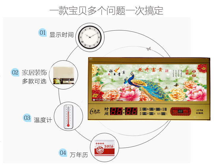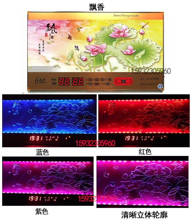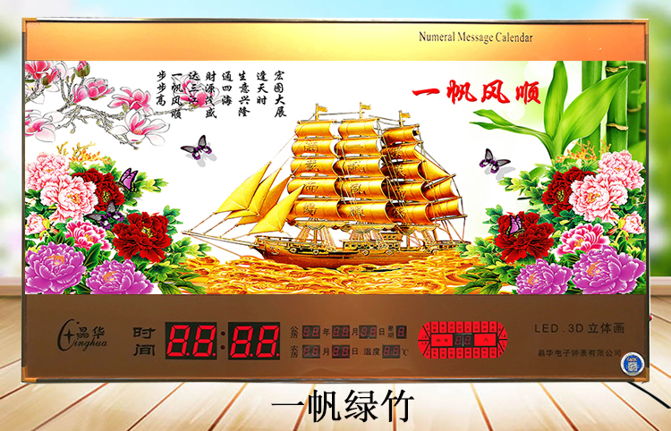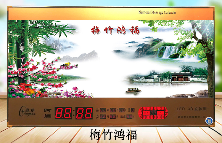 新房客廳裝飾日歷掛鐘,家和風景萬年歷,超薄七彩燈光更漂亮
